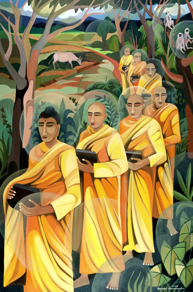 "Buda y sus seguidores / Buddha and His Followers", óleo sobre lienzo / oil on canvas, 180 x 120 cm., 2003