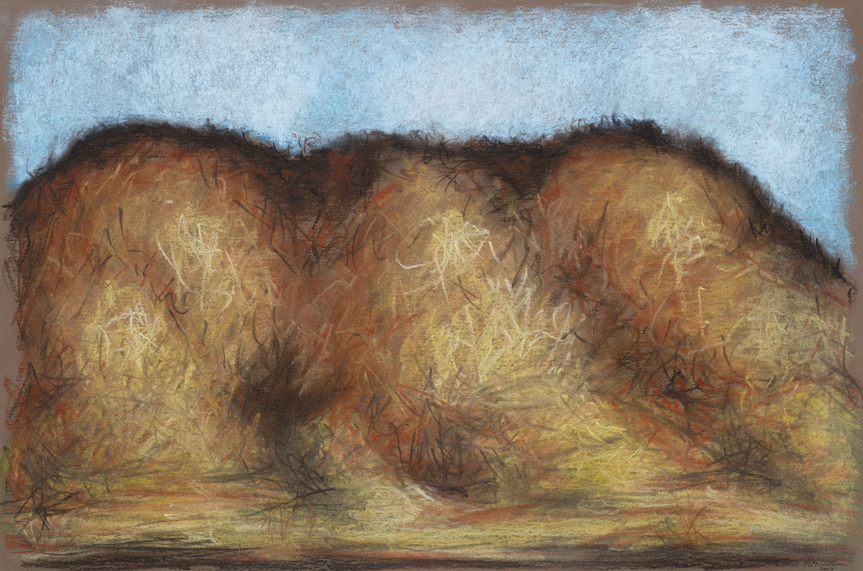 Small Hill, 2004Signed and dated 'Sudhir Patwardhan 2004' lower right; signed and dated and with gallery label on the reversePastel on paper30.5 x 46 cm; 12 x 18 1/8 inProvenanceSakhshi Gallery, Mumbai;