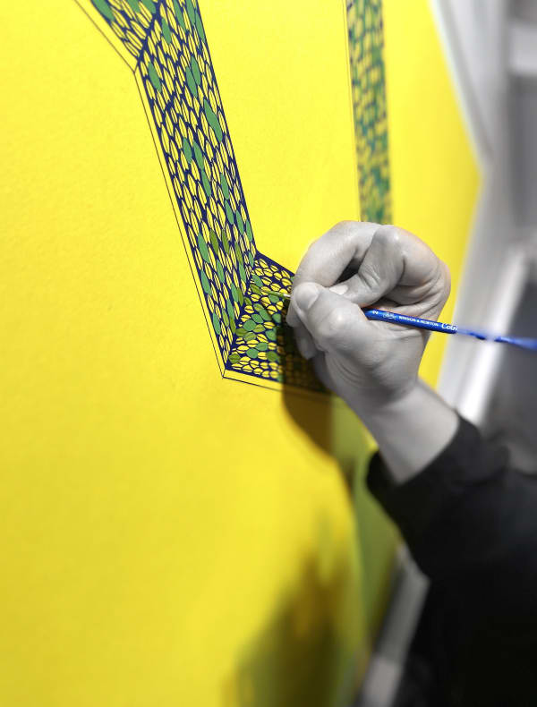 All the artists work in one way or another with geometry, calligraphy and minimalist aesthetics, often combining more than one element in their work.